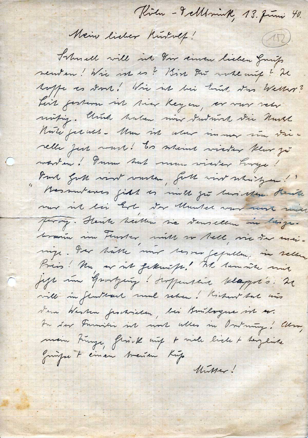 Anna Schmitz an ihren Sohn Rudolf, 13. Juni 1940