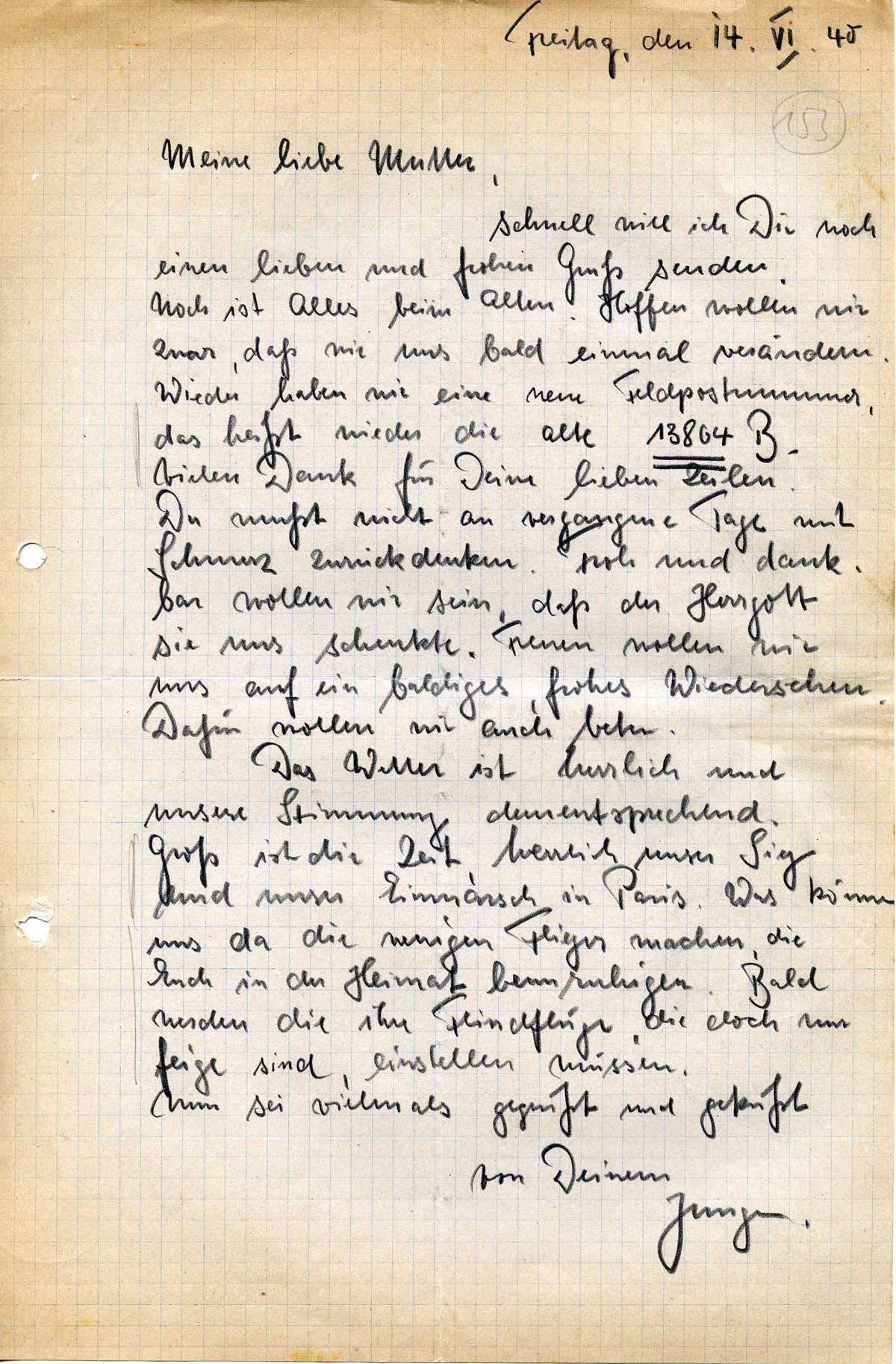 Rudolf Schmitz an Mutter Anna, 14. Juni 1940