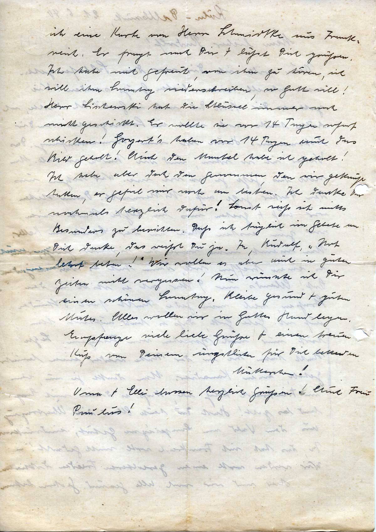 Dich grüßt u. küßt Dein großer Junge.