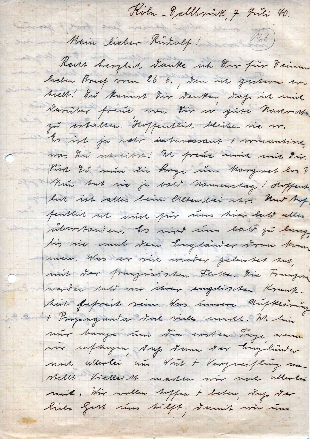 Anna Schmitz an ihren Sohn Rudolf, 7. Juli 1940