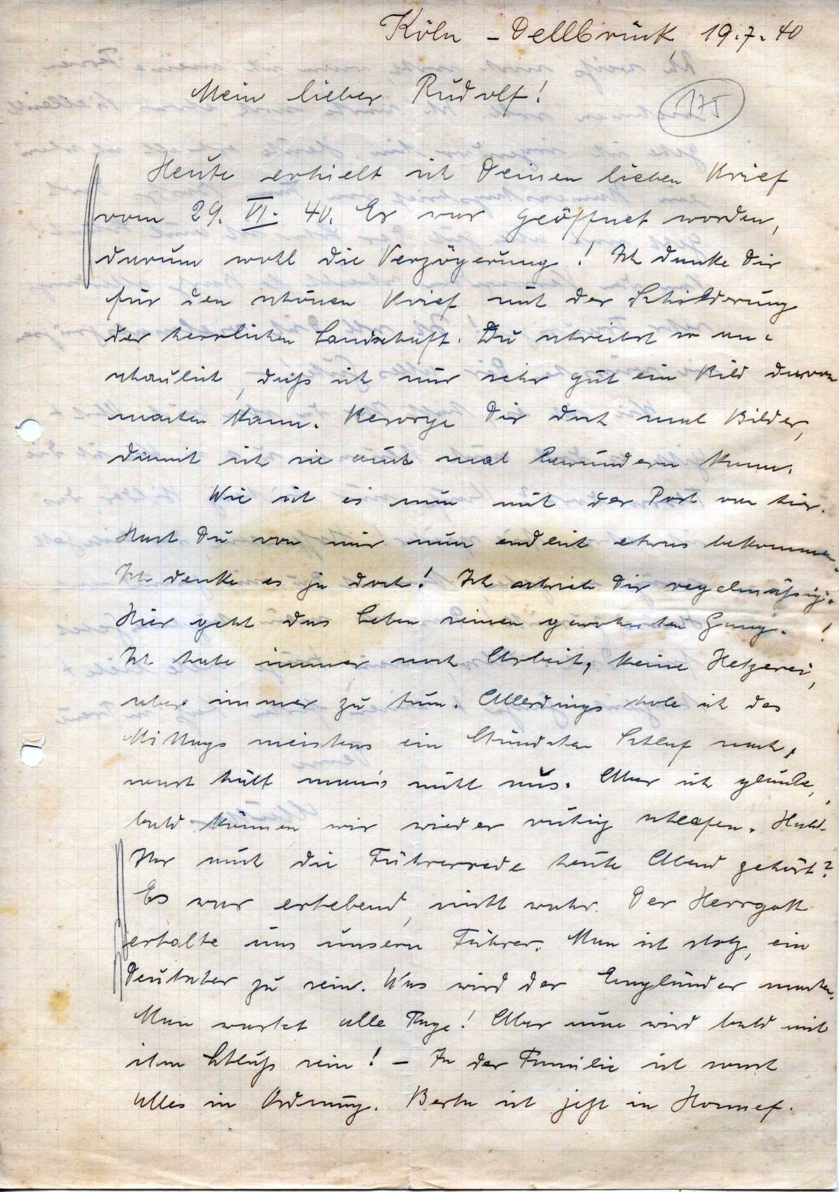 Anna Schmitz an ihren Sohn Rudolf, 19. Juli 1940