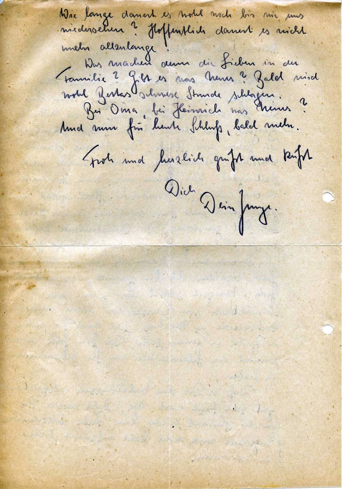 Bei Oma, bei Heinrich was Neues? Und nun für heute Schluß, bald mehr.