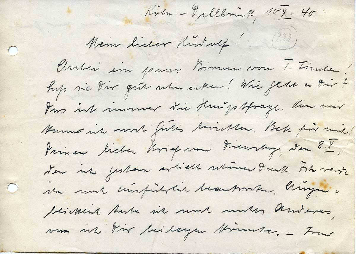 Anna Schmitz an ihren Sohn Rudolf, 10. Oktober 1940