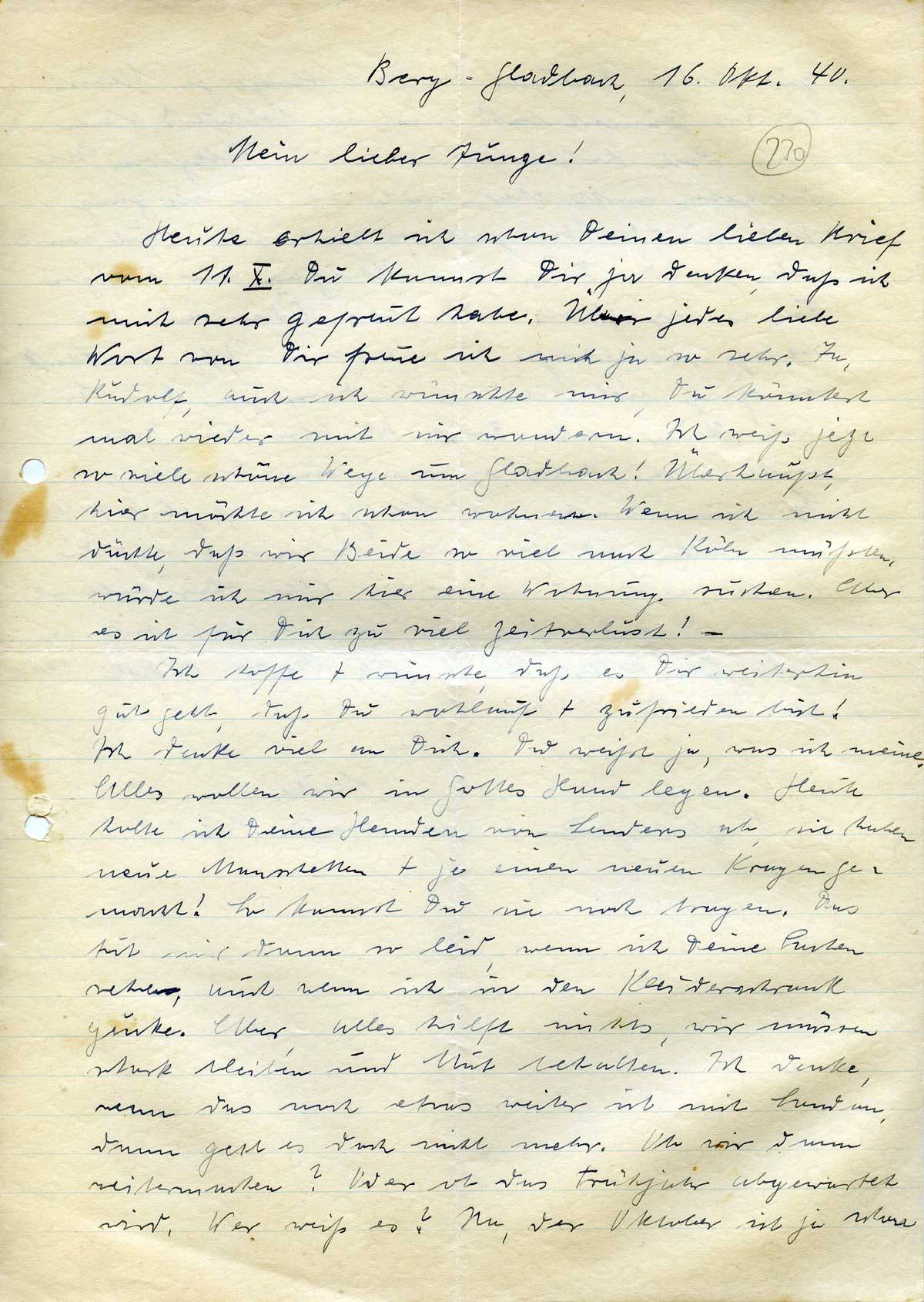Anna Schmitz an ihren Sohn Rudolf, 16. Oktober 1940