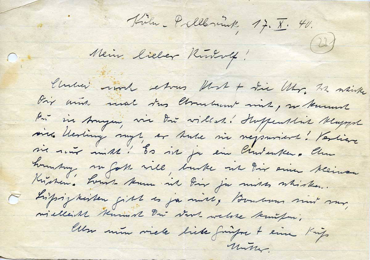 Anna Schmitz an ihren Sohn Rudolf, 17. Oktober 1940