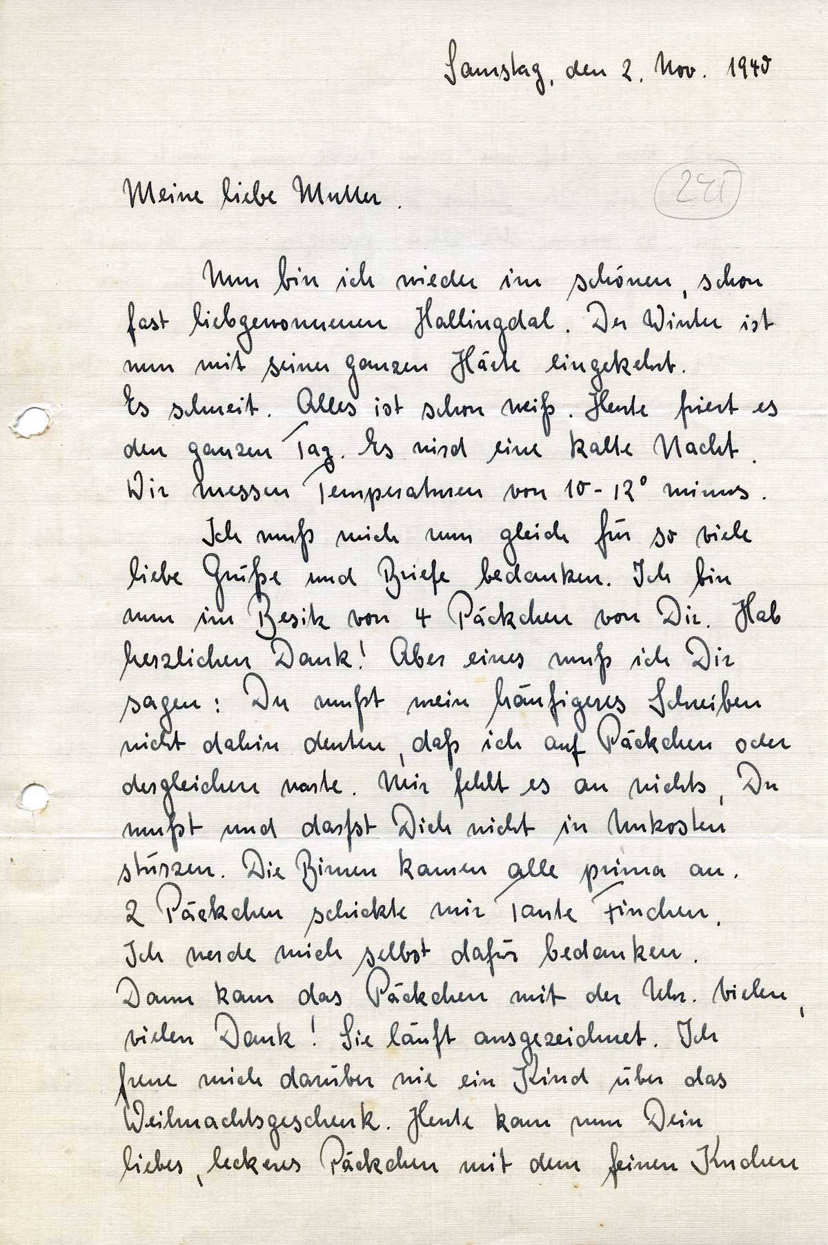 Rudolf Schmitz an Mutter Anna, 1. November 1940