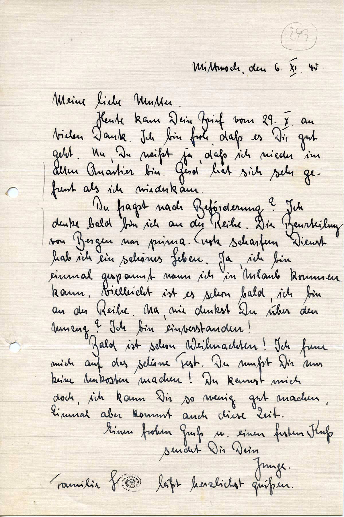 Rudolf Schmitz an Mutter Anna, 6. November 1940