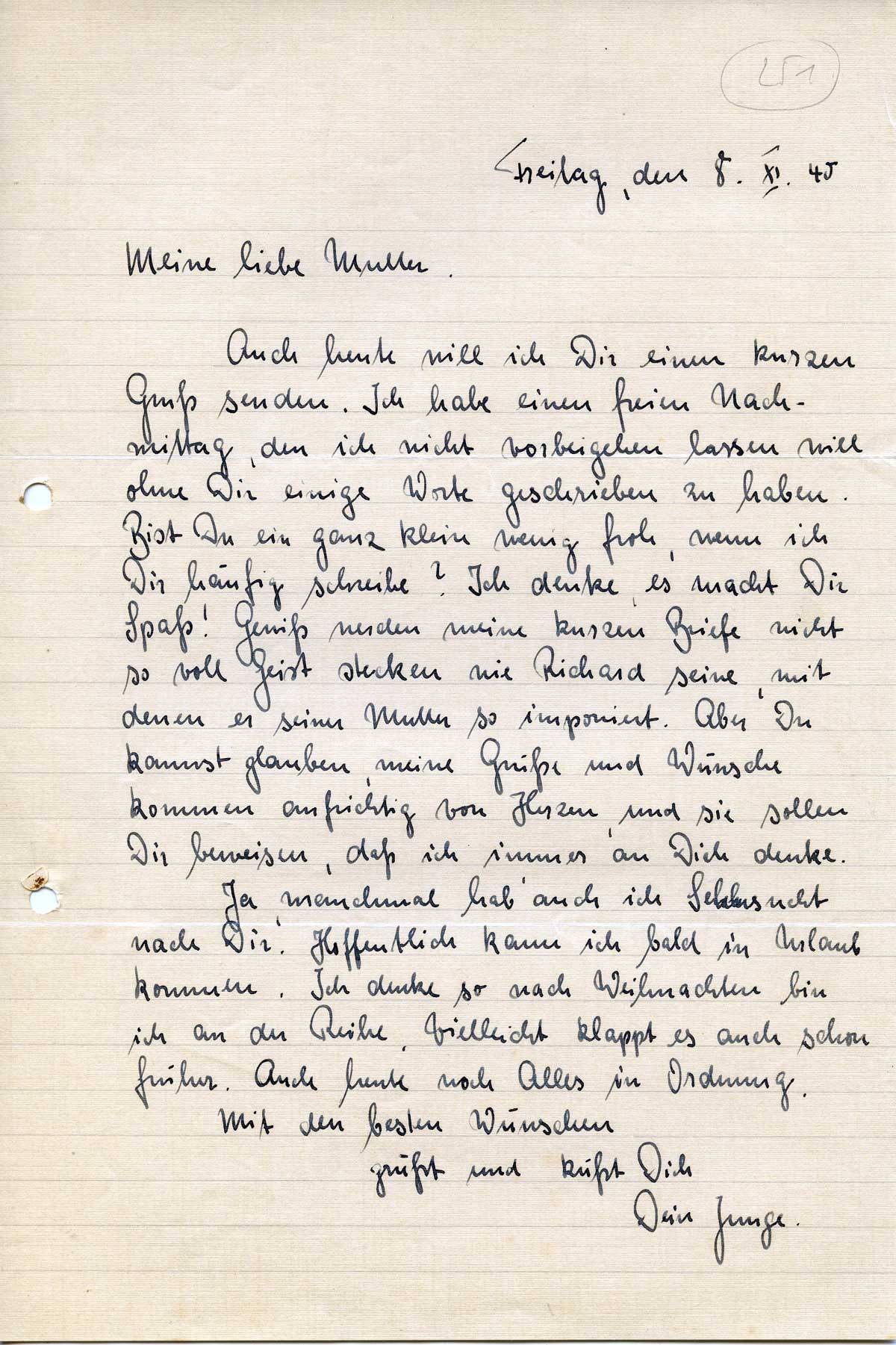 Rudolf Schmitz an Mutter Anna, 8. November 1940