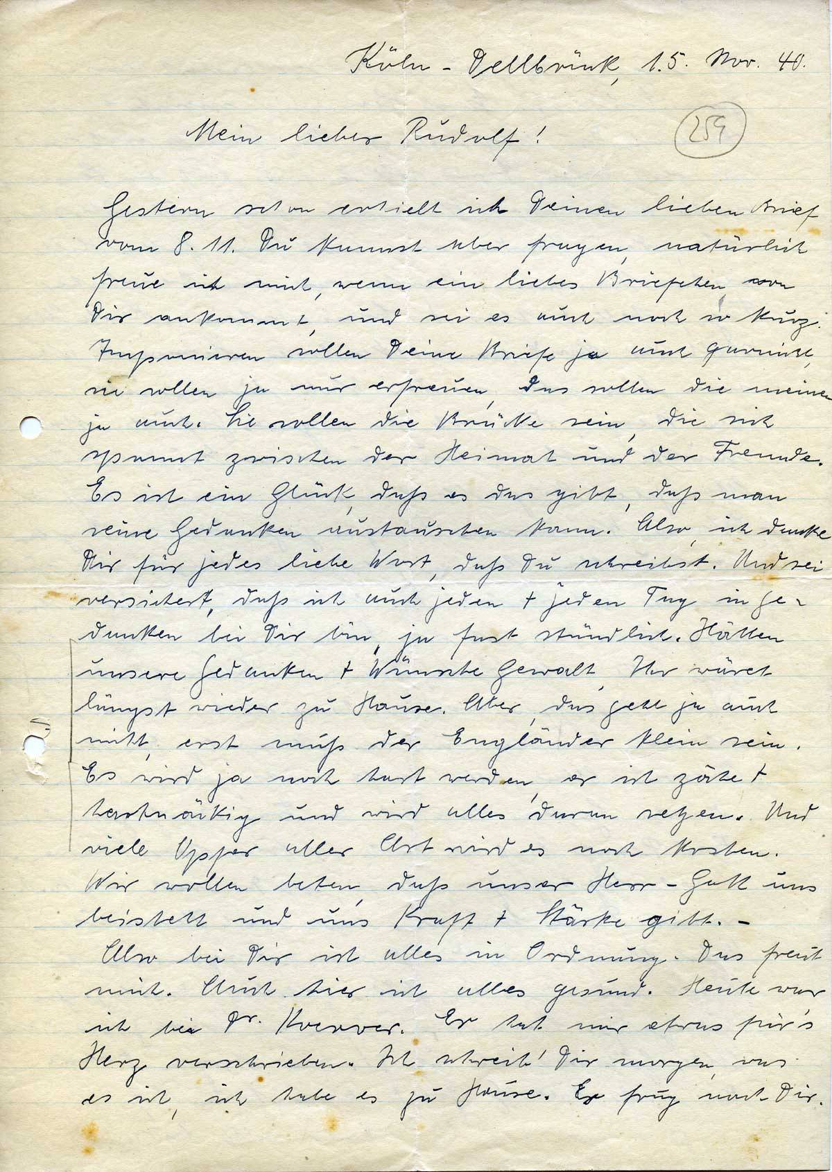 Anna Schmitz an ihren Sohn Rudolf, 15. November 1940