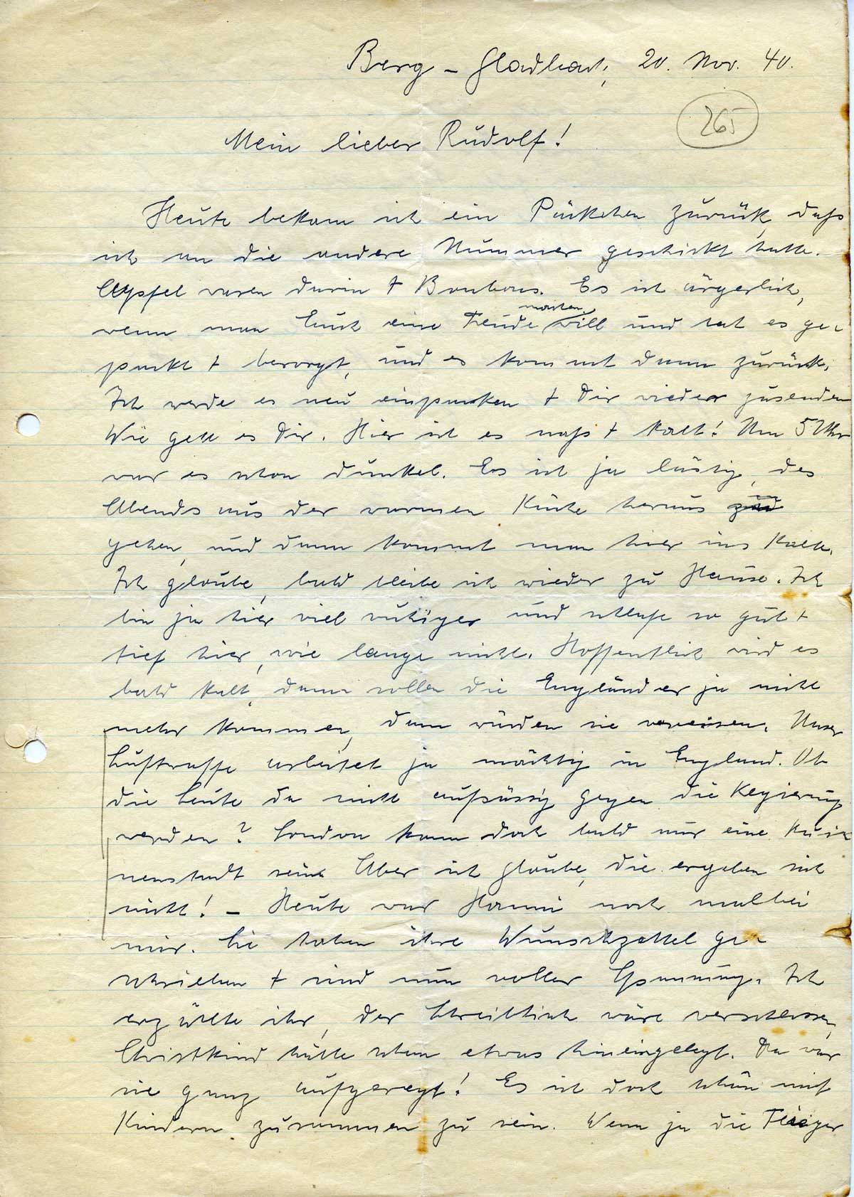 Anna Schmitz an ihren Sohn Rudolf, 20. November 1940