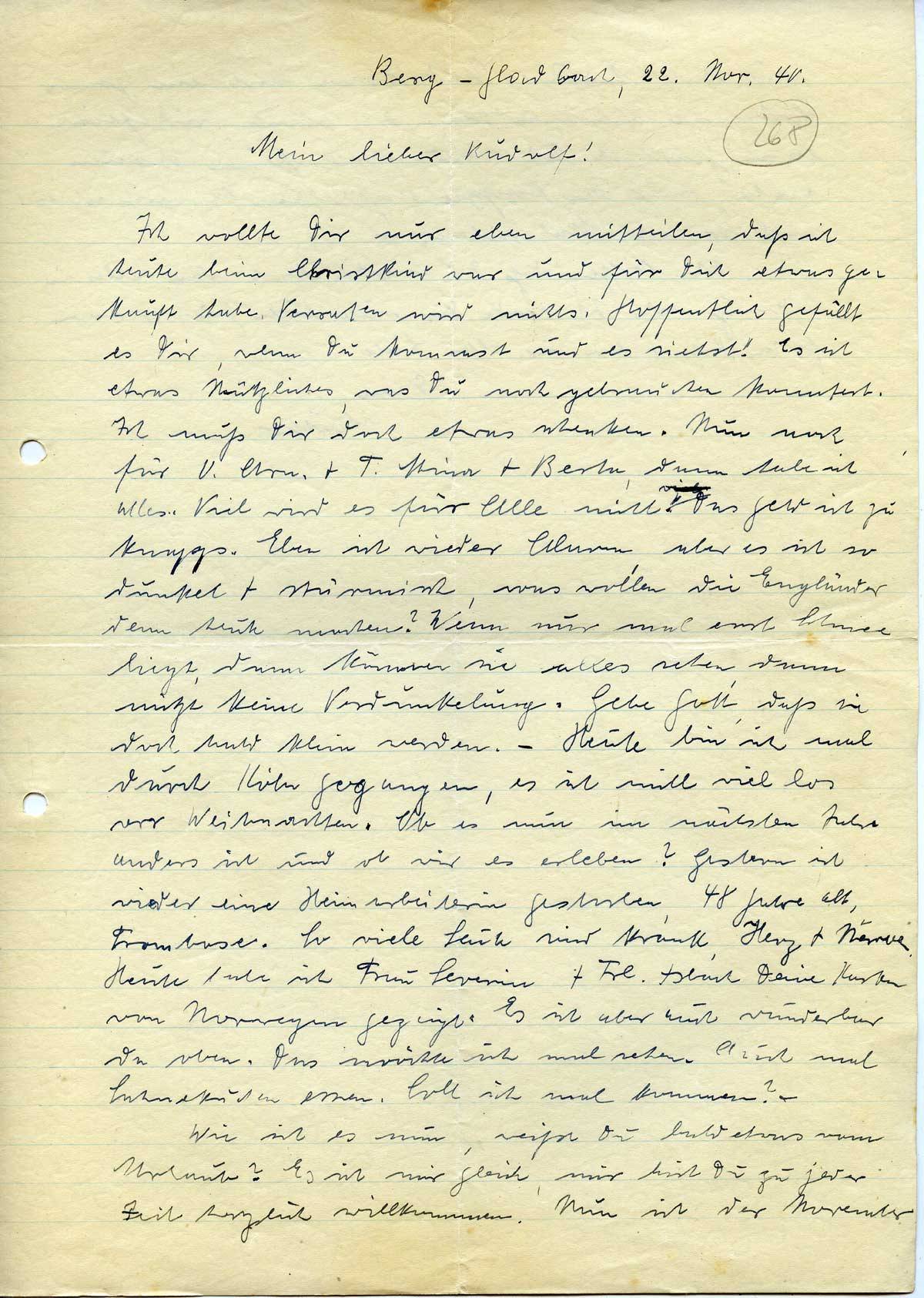 Anna Schmitz an ihren Sohn Rudolf, 22. November 1940