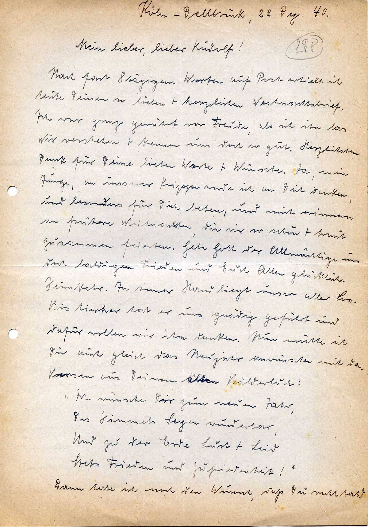 Köln-Dellbrück, 22. Dez. 40.