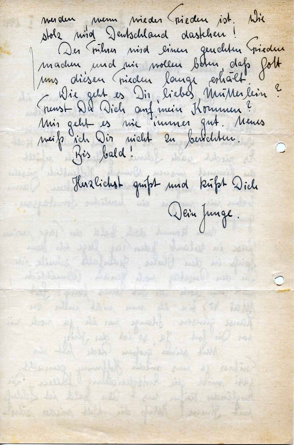 Der Führer wird einen gerechten Frieden machen und wir wollen beten, daß Gott uns diesen Frieden lange erhält.