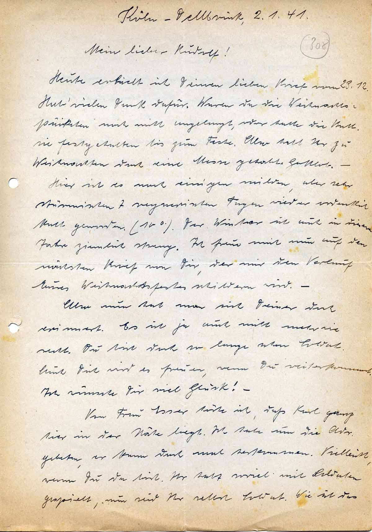 Anna Schmitz an ihren Sohn Rudolf, 2. Januar 1941