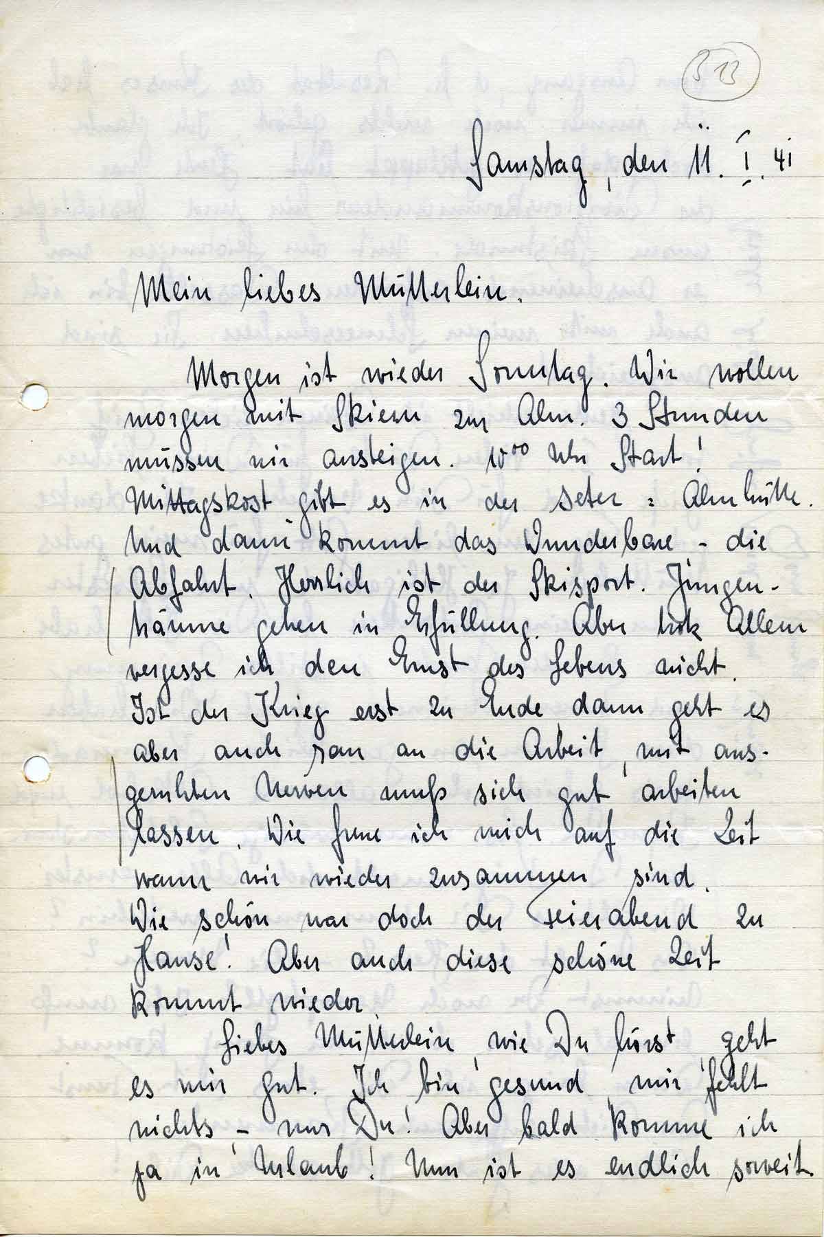 Rudolf Schmitz an Mutter Anna, 11. Januar 1941