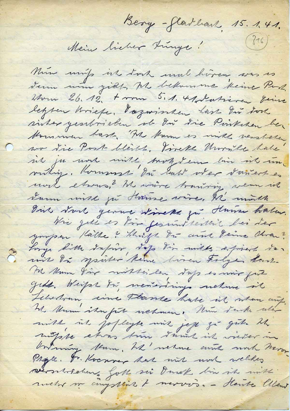 Anna Schmitz an ihren Sohn Rudolf, 15. Januar 1941