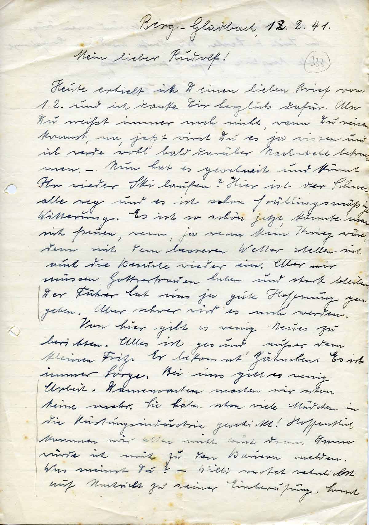 Anna Schmitz an ihren Sohn Rudolf, 12. Februar 1941