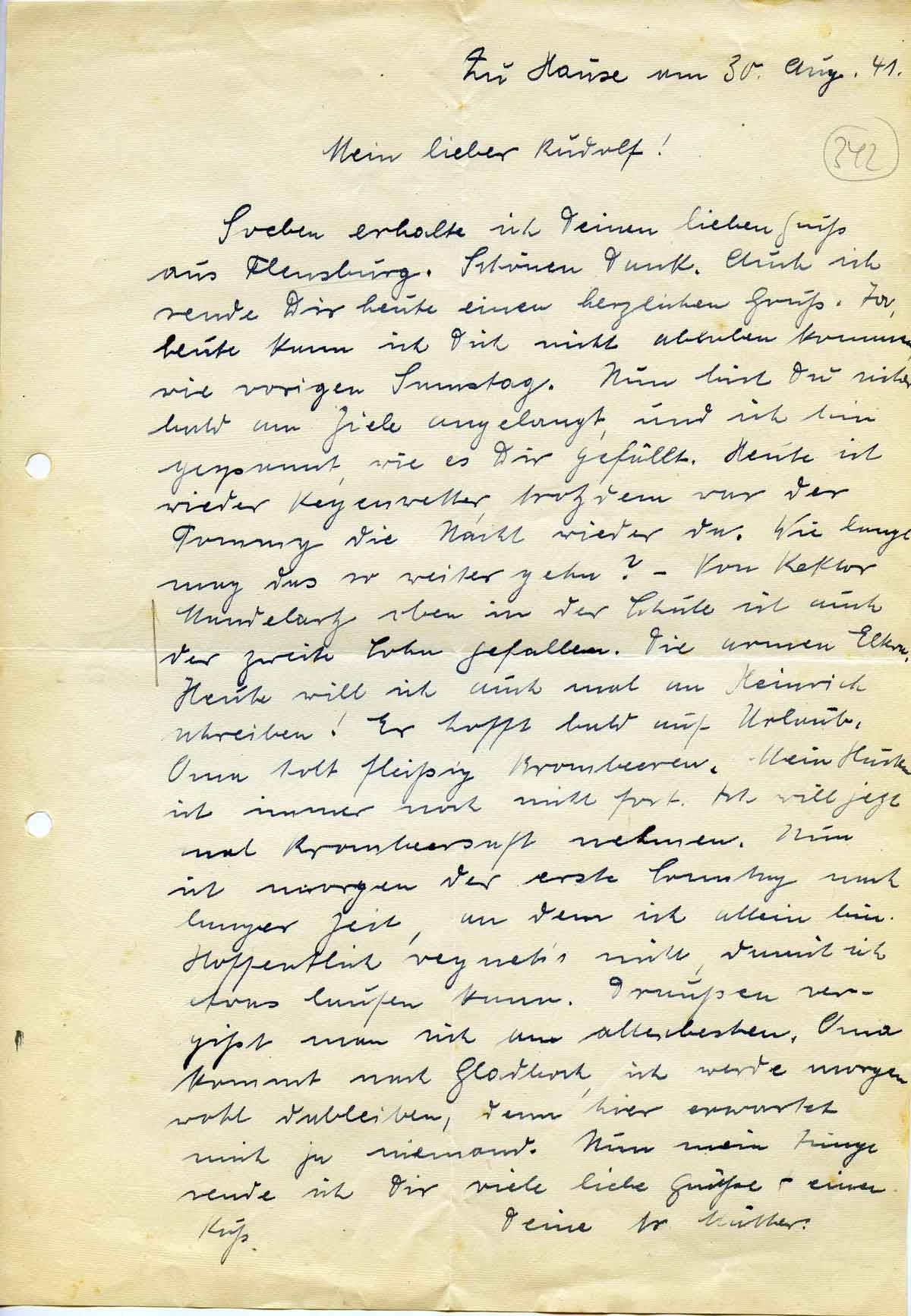 Zu Hause am 30. Aug. 41.