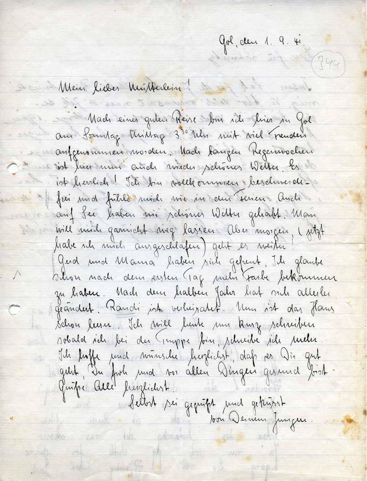 Rudolf Schmitz an Mutter Anna, 1. September 1941