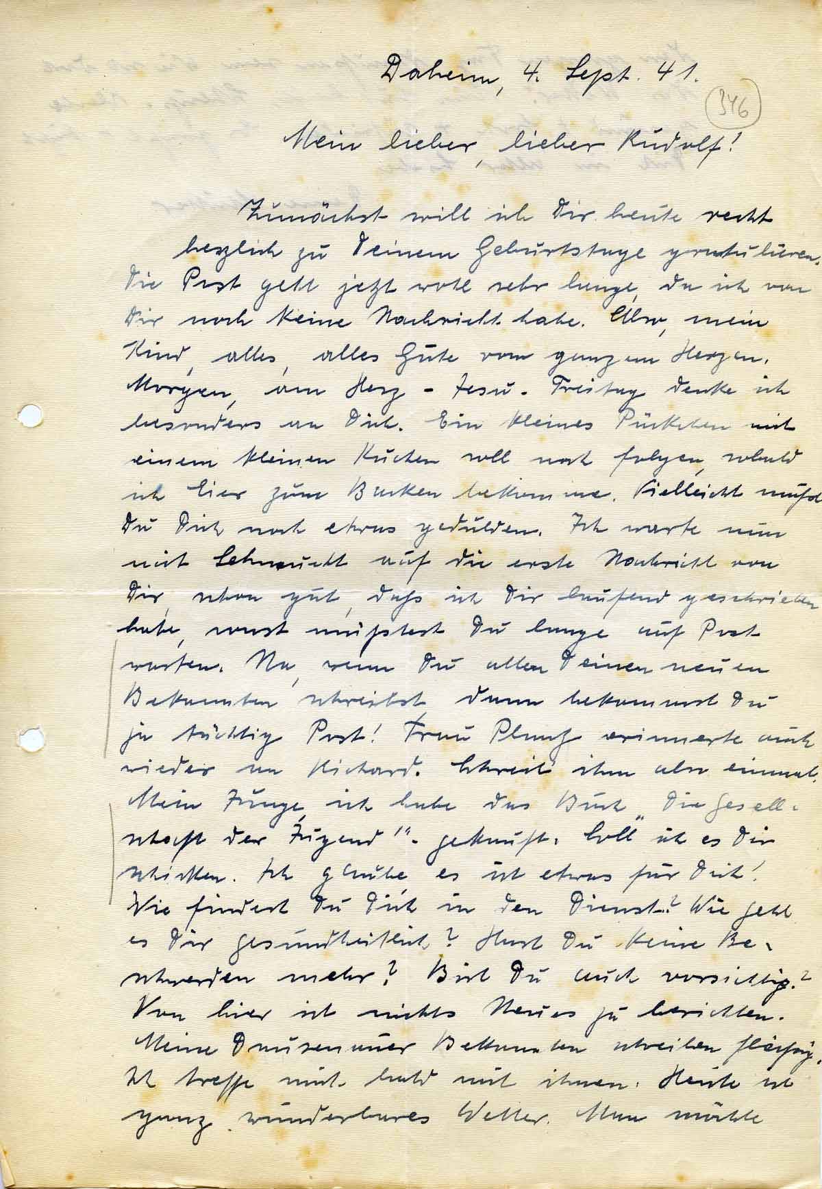 Anna Schmitz an ihren Sohn Rudolf, 4. September 1941