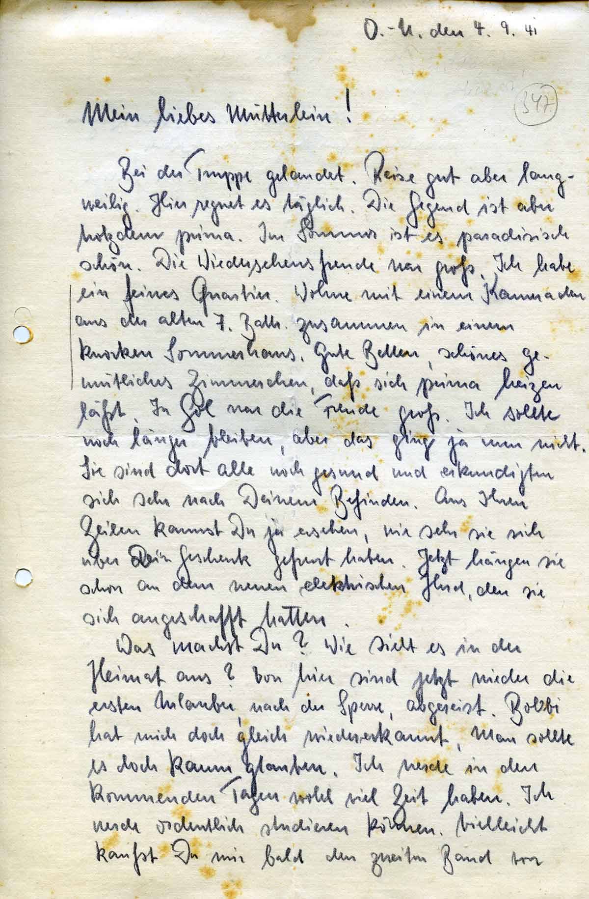Rudolf Schmitz an Mutter Anna, 4. September 1941