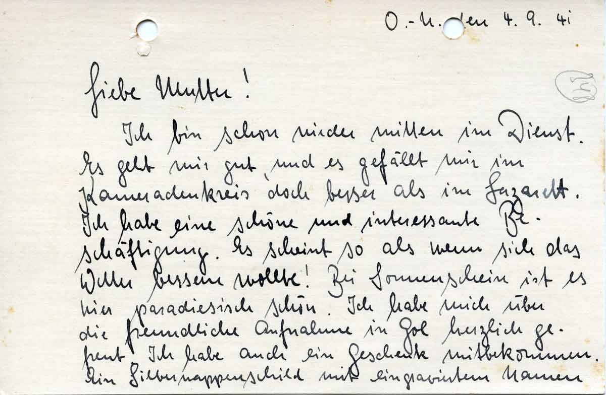 Rudolf Schmitz an Mutter Anna, 4. September 1941