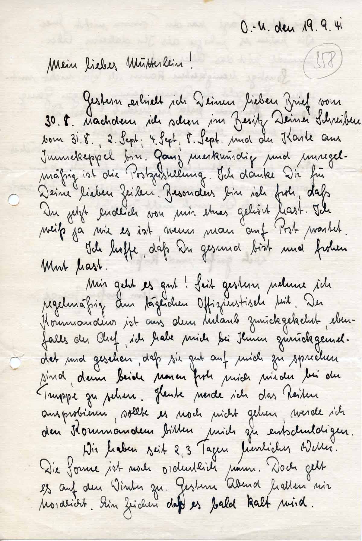 Rudolf Schmitz an Mutter Anna, 19. September 1941