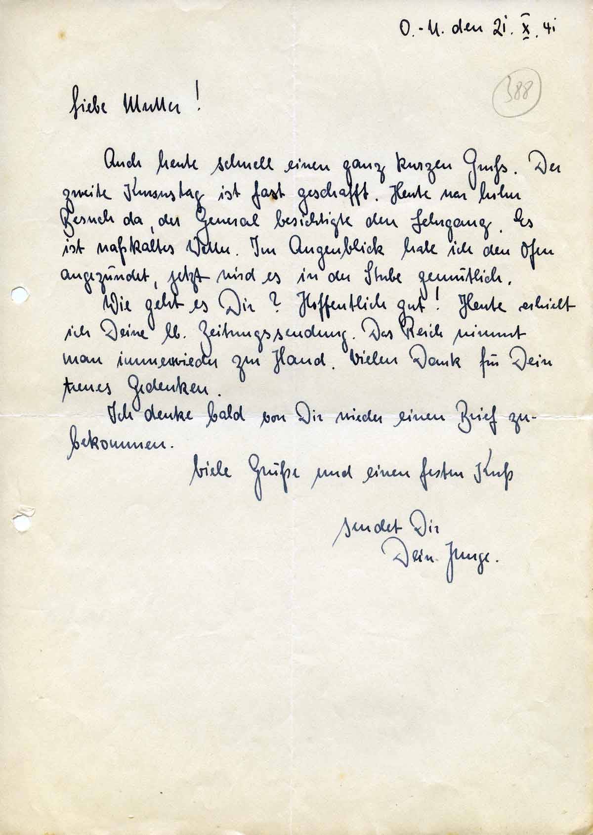 Rudolf Schmitz an Mutter Anna, 21. Oktober 1941