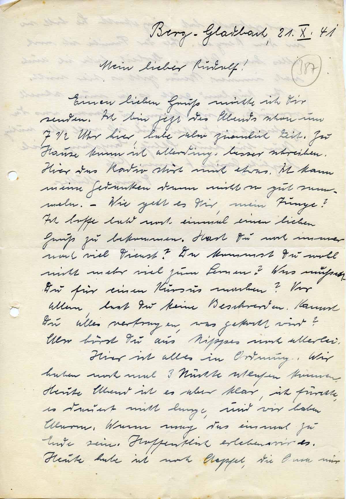 Anna Schmitz an ihren Sohn Rudolf, 21. Oktober 1941