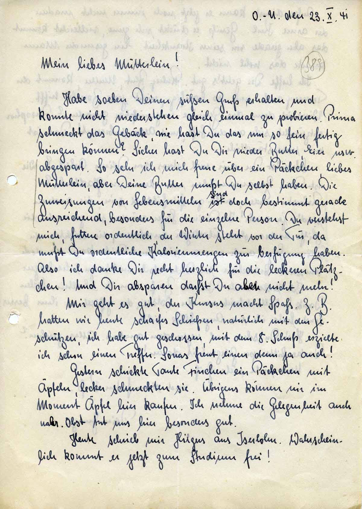 Rudolf Schmitz an Mutter Anna, 23. Oktober 1941