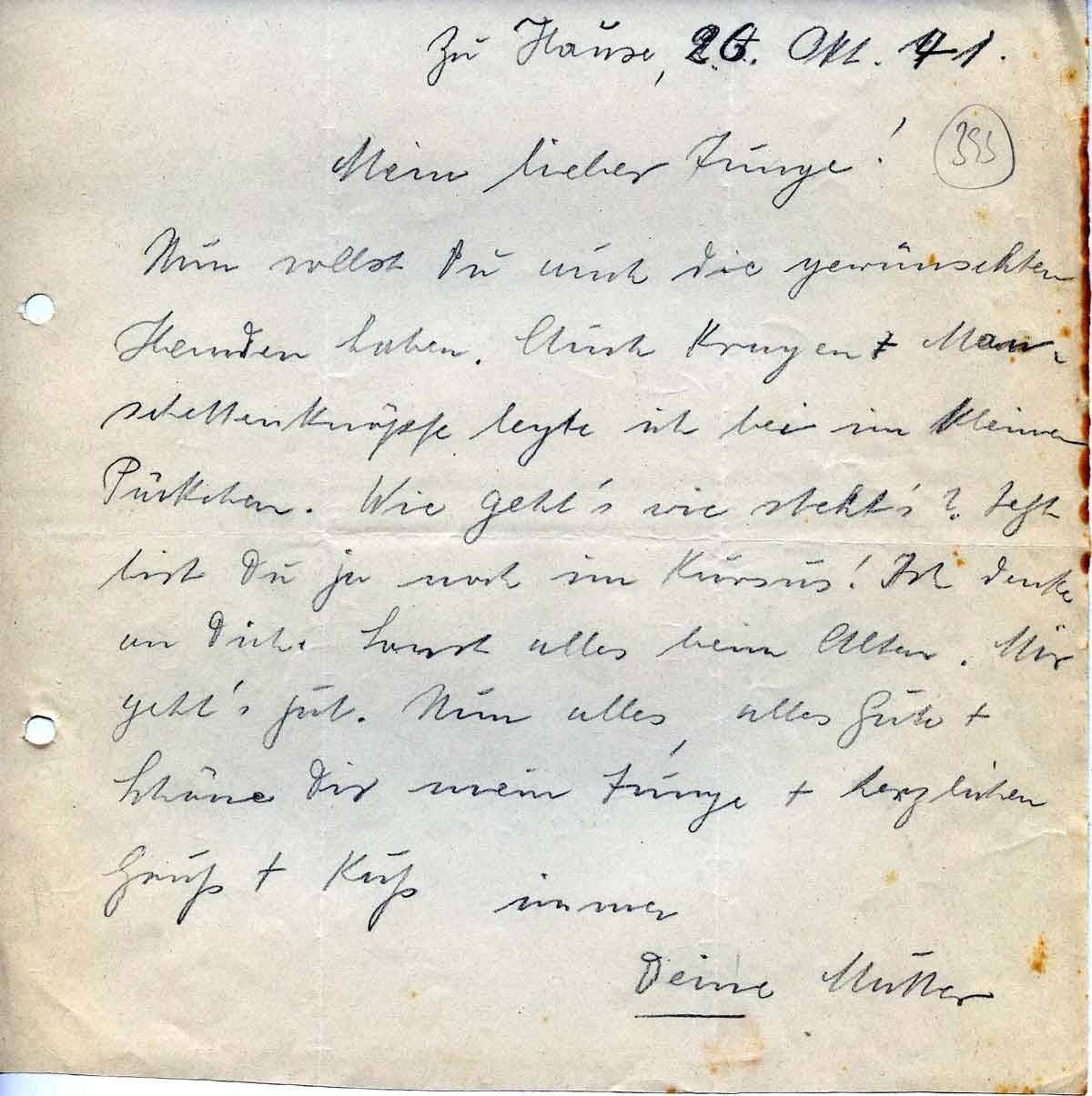 Anna Schmitz an ihren Sohn Rudolf, 26. Oktober 1941