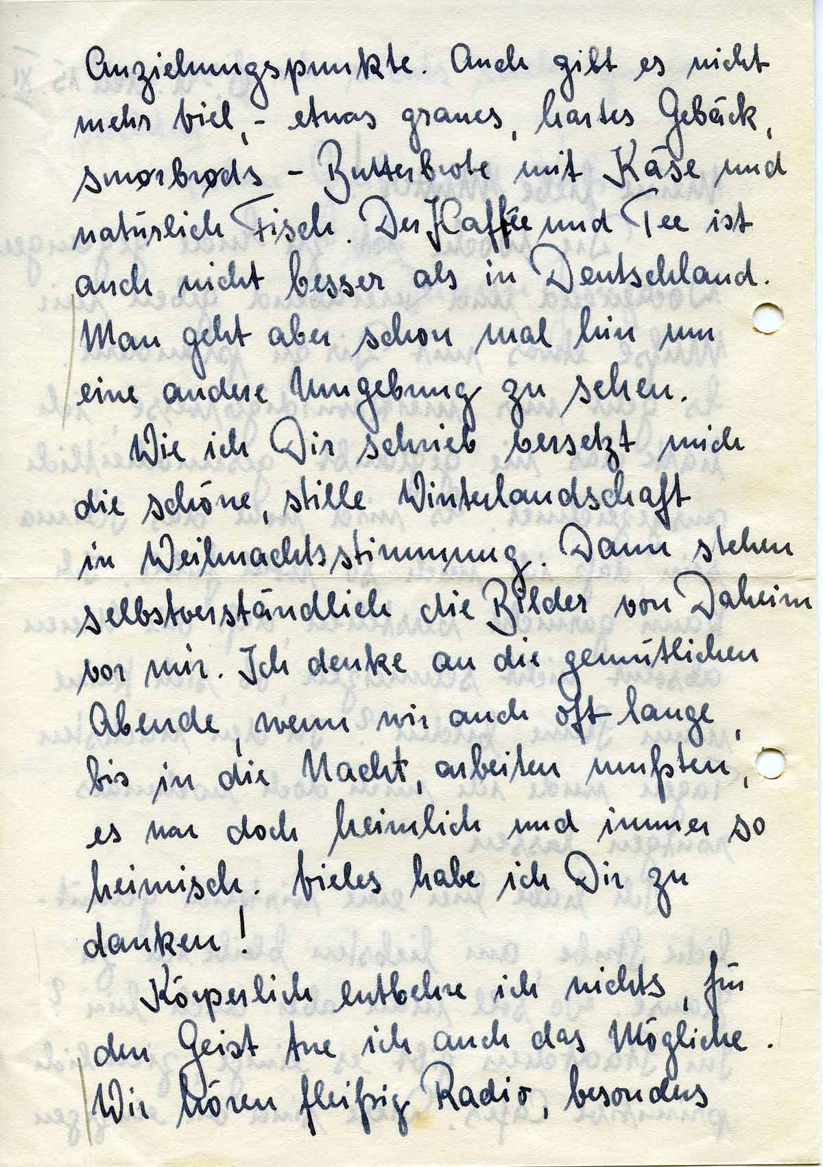 Körperlich entbehre ich nichts, für den Geist tue ich auch das Mögliche. Wir hören fleißig Radio, besonders