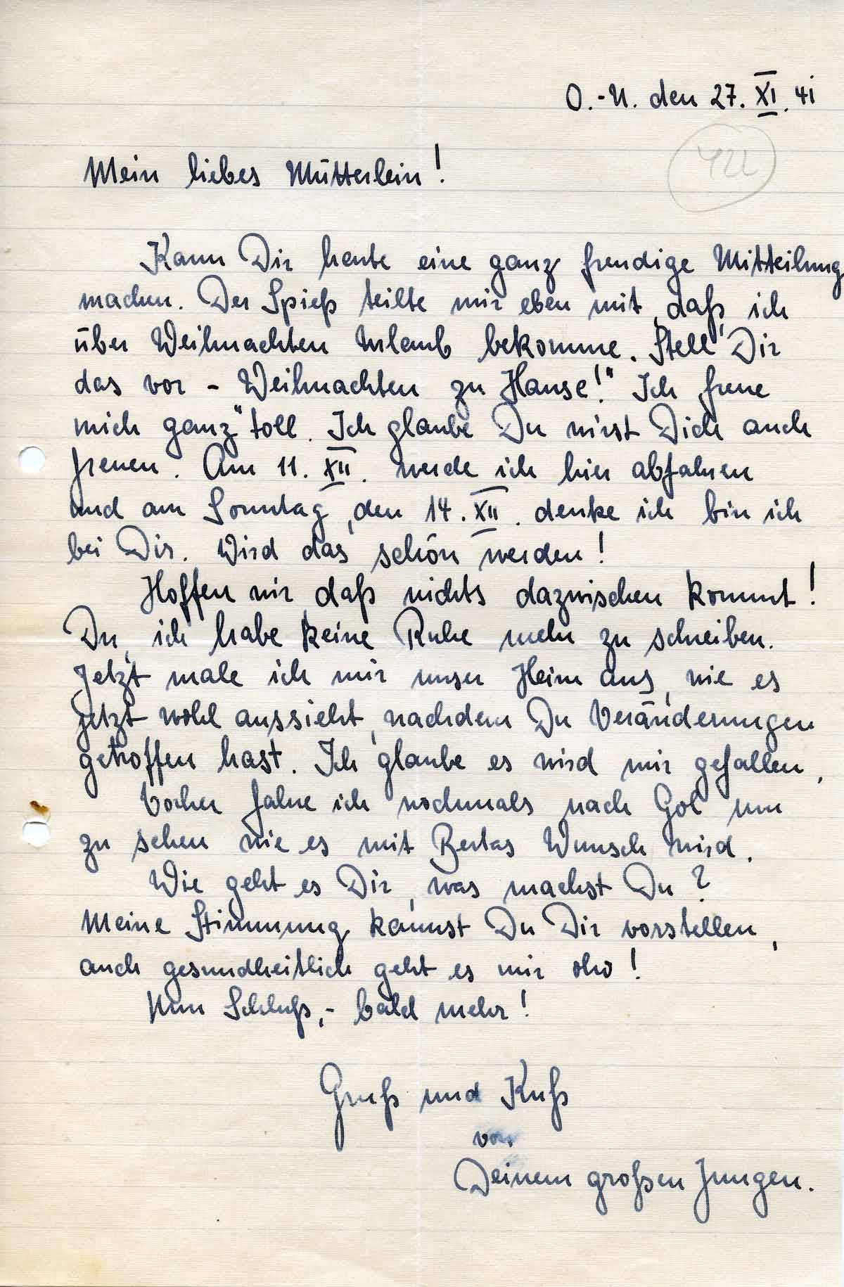 Rudolf Schmitz an Mutter Anna, 27. November 1941