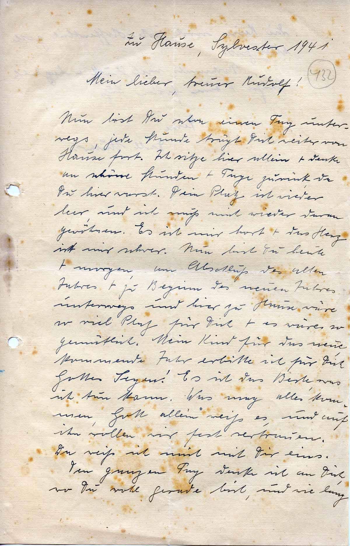 Anna Schmitz an ihren Sohn Rudolf, 31. Dezember 1941