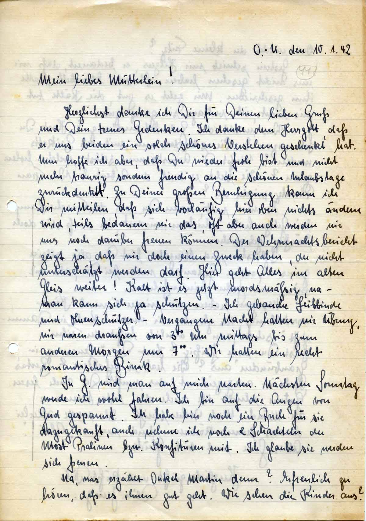 Rudolf Schmitz an Mutter Anna, 10. Januar 1942