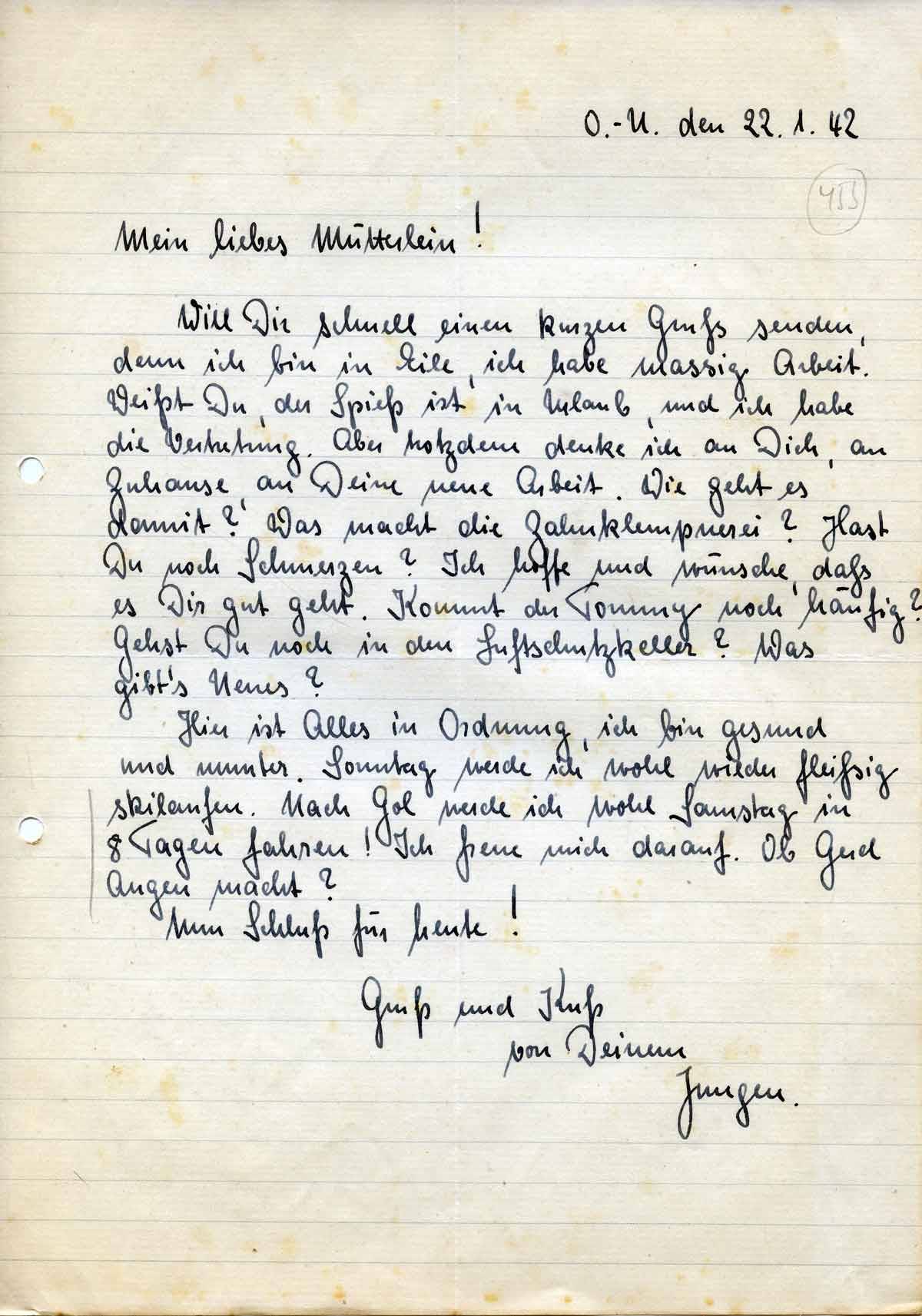 Rudolf Schmitz an Mutter Anna, 22. Januar 1942