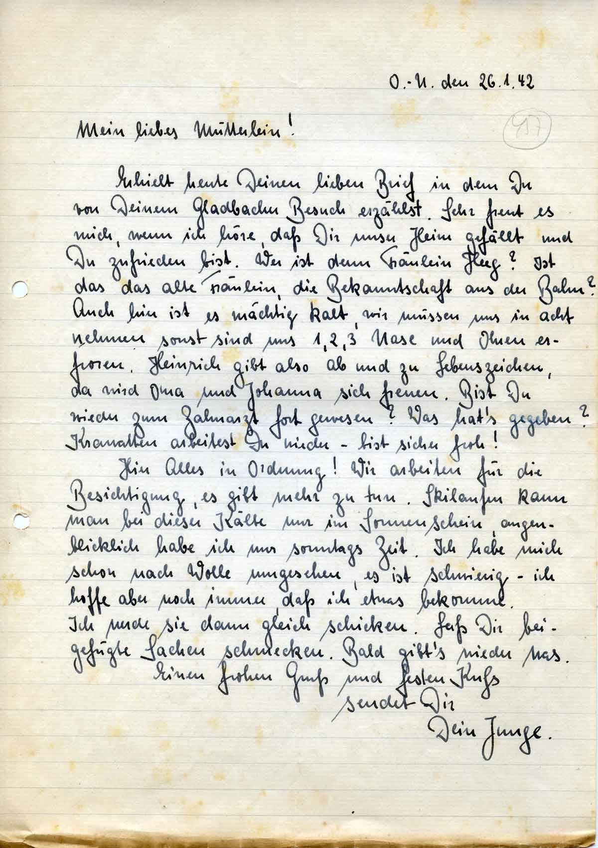 Rudolf Schmitz an Mutter Anna, 26. Januar 1942