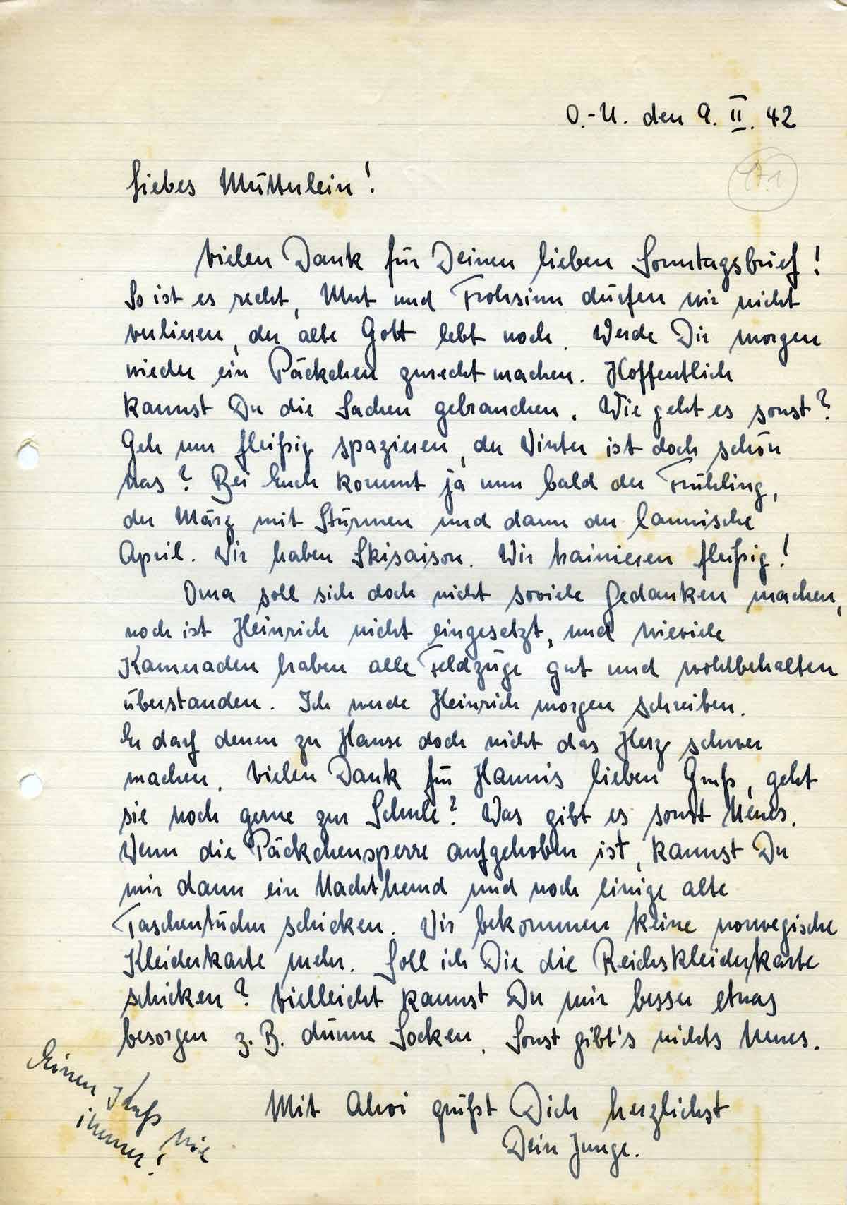 Rudolf Schmitz an Mutter Anna, 9. Februar 1942