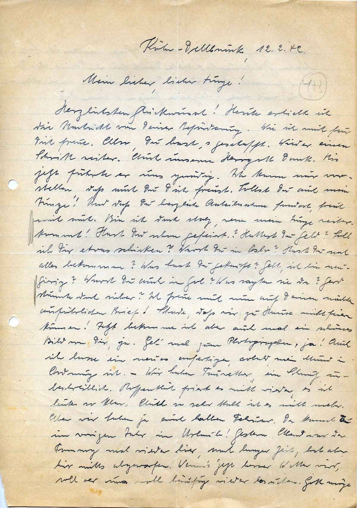 Anna Schmitz an ihren Sohn Rudolf, 12. Februar 1942