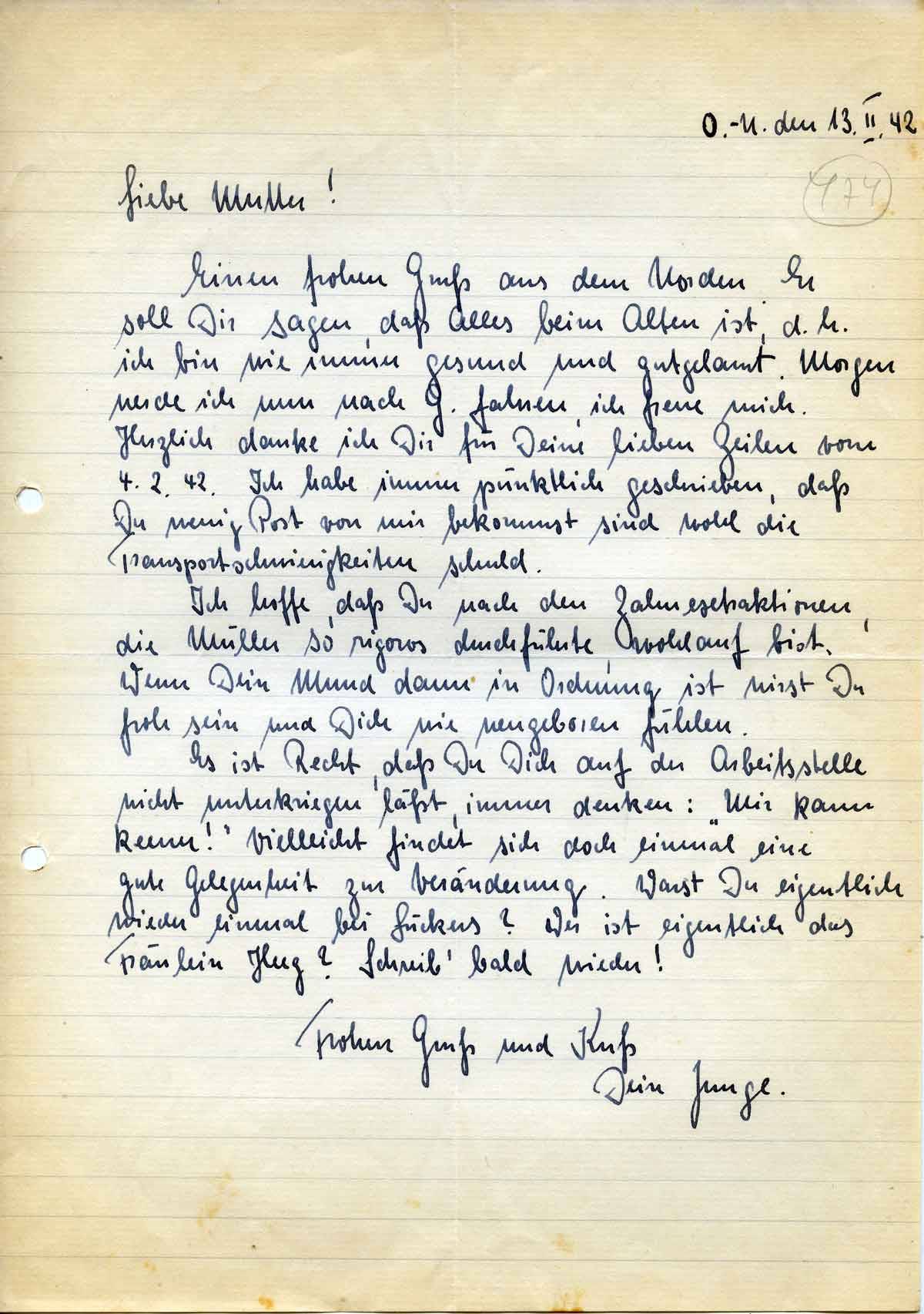 Rudolf Schmitz an Mutter Anna, 13. Februar 1942