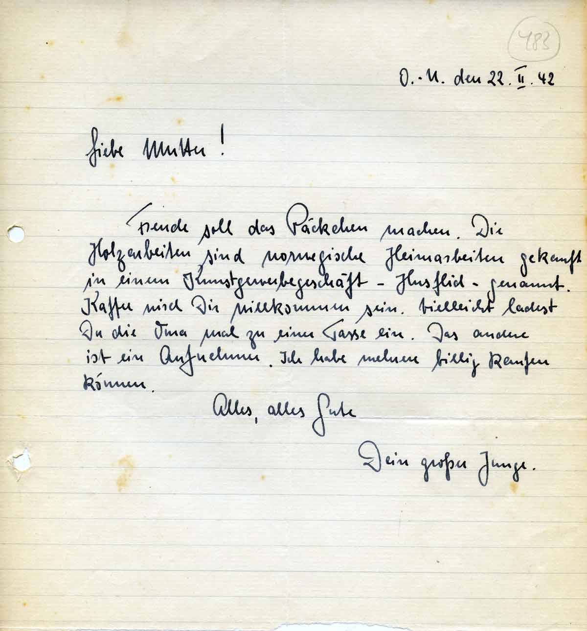 Rudolf Schmitz an Mutter Anna, 22. Februar 1942