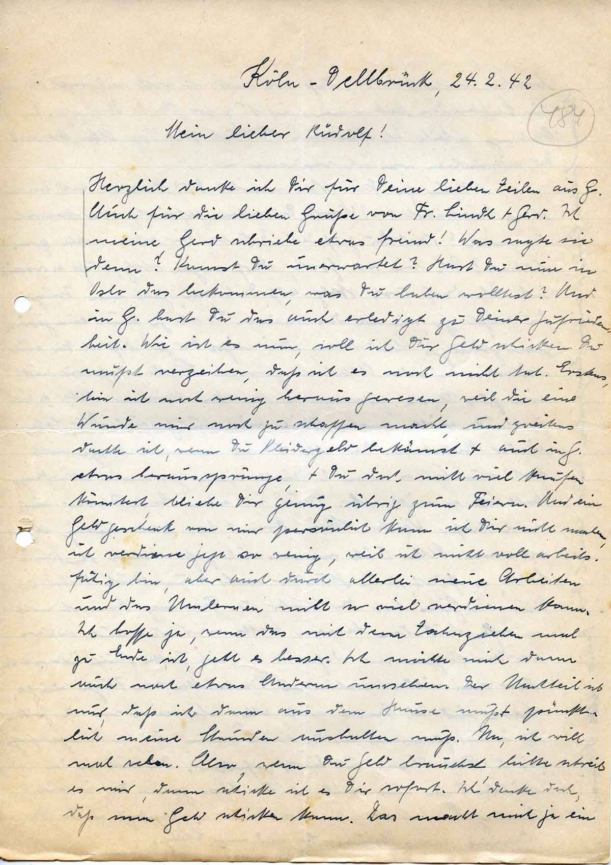 Anna Schmitz an ihren Sohn Rudolf, 24. Februar 1942