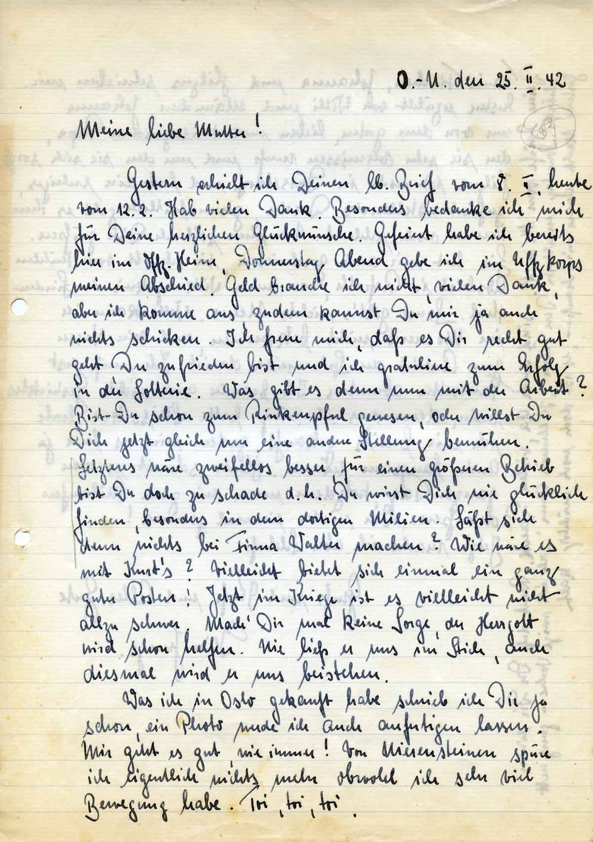 Rudolf Schmitz an Mutter Anna, 25. Februar 1942