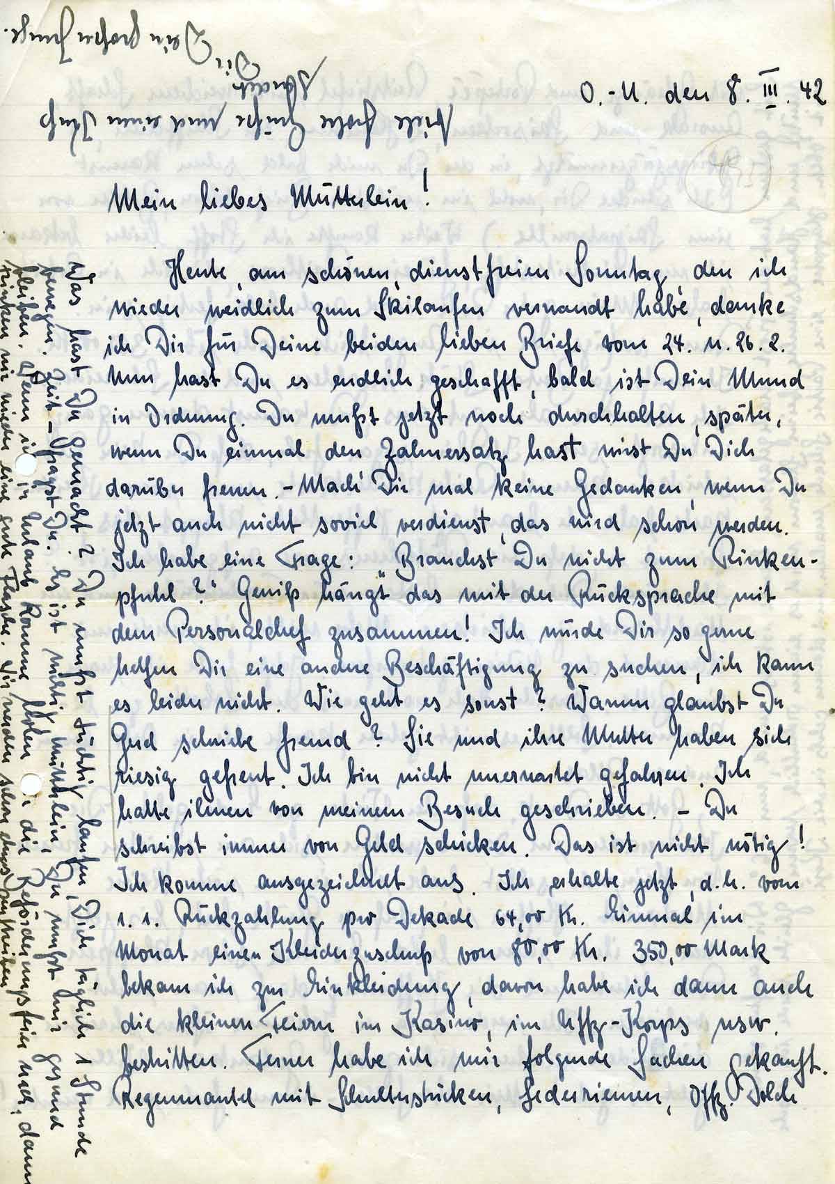 Rudolf Schmitz an Mutter Anna, 8. März 1942