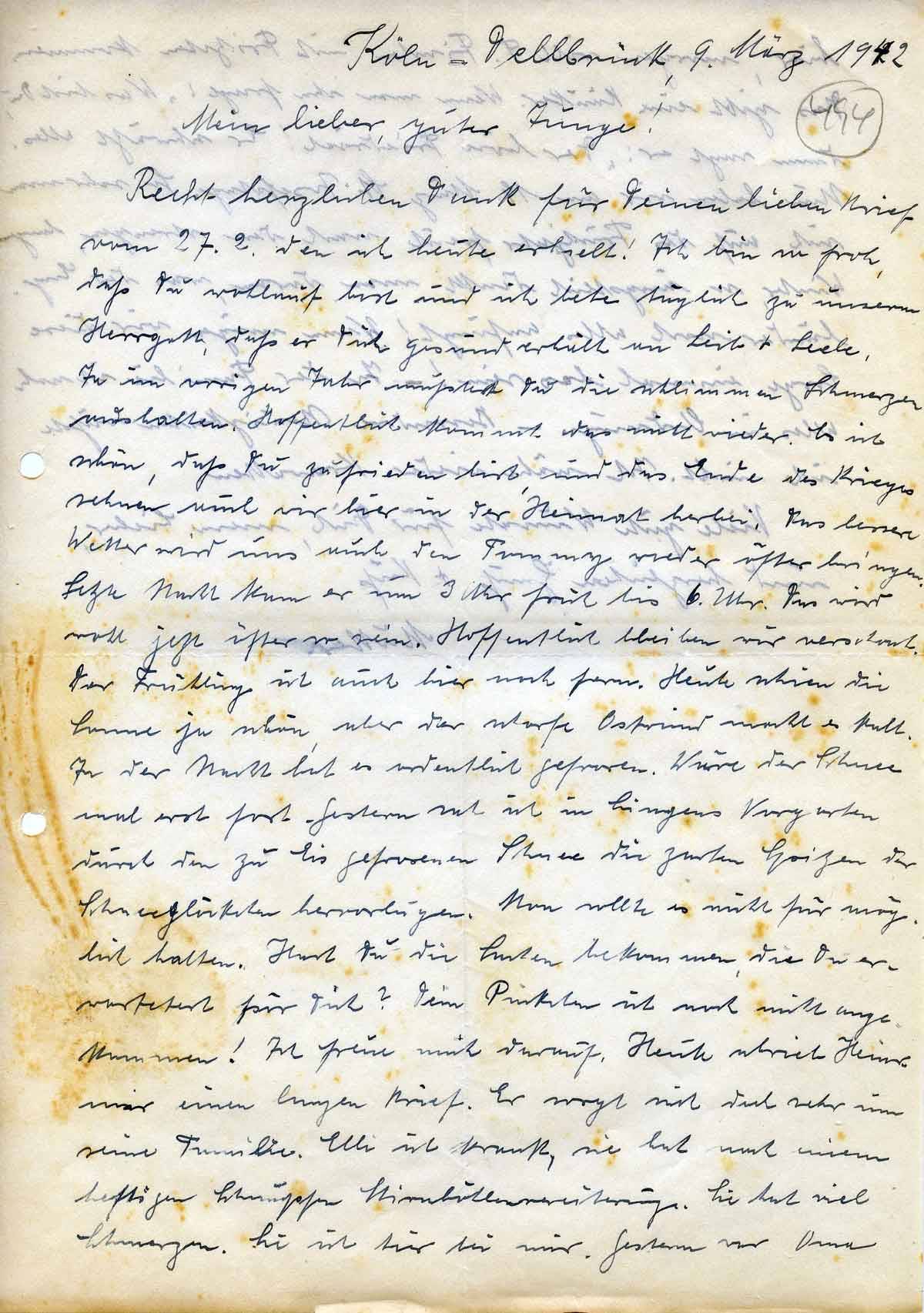 Anna Schmitz an ihren Sohn Rudolf, 9. März 1942