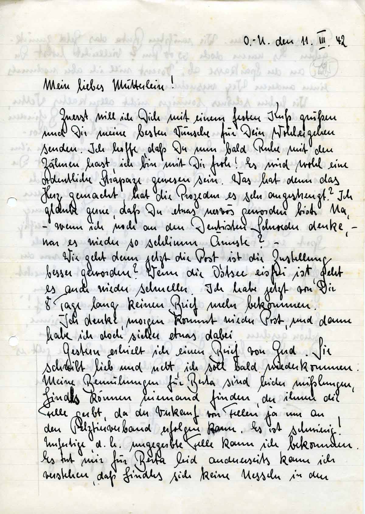 Rudolf Schmitz an Mutter Anna, 11. März 1942