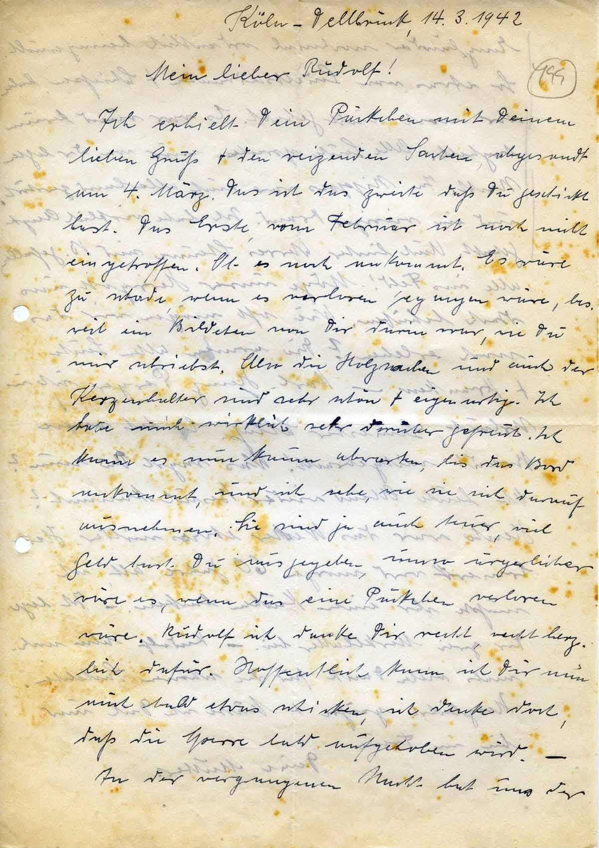 Anna Schmitz an ihren Sohn Rudolf, 14. März 1942
