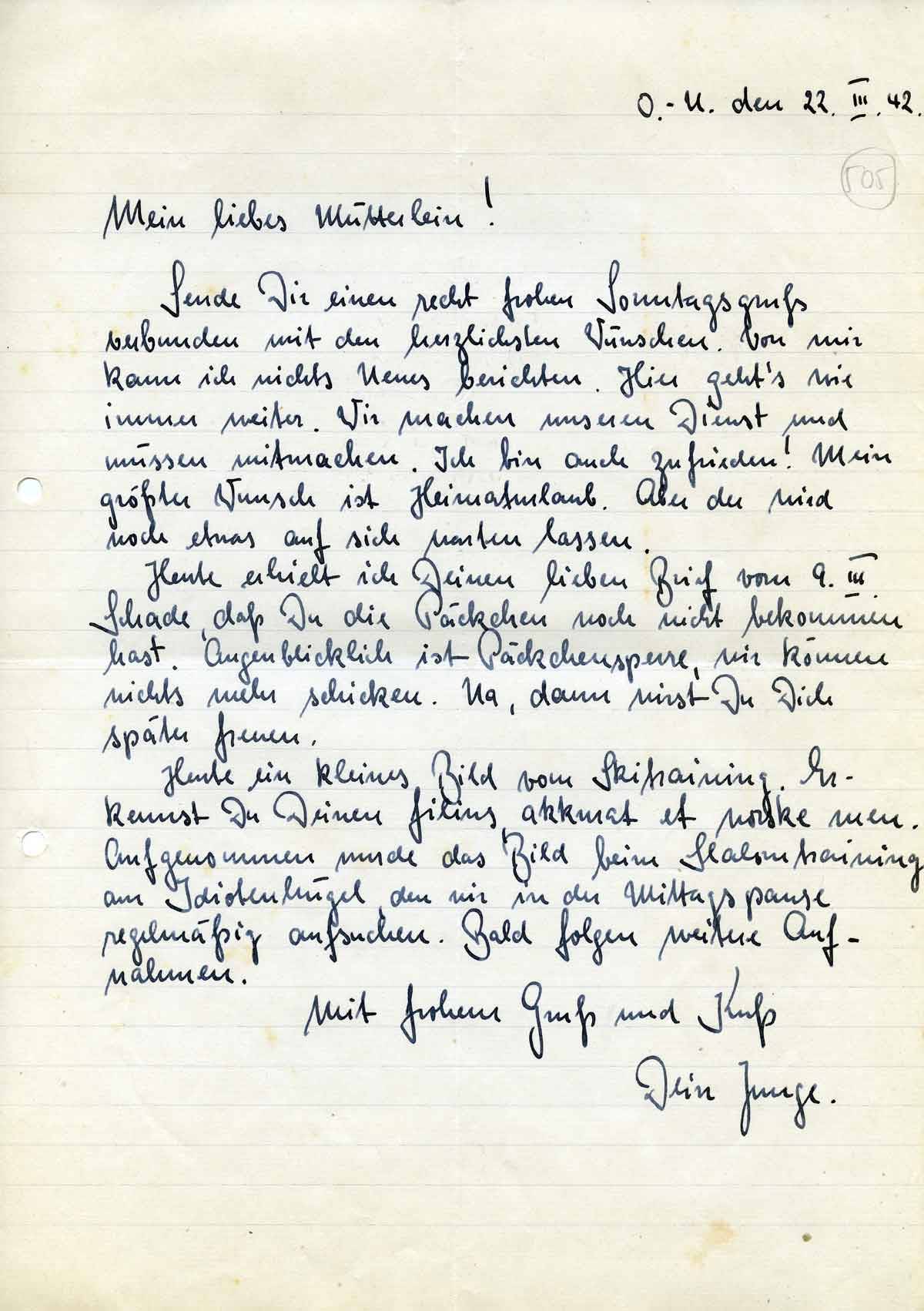 Rudolf Schmitz an Mutter Anna, 22. März 1942