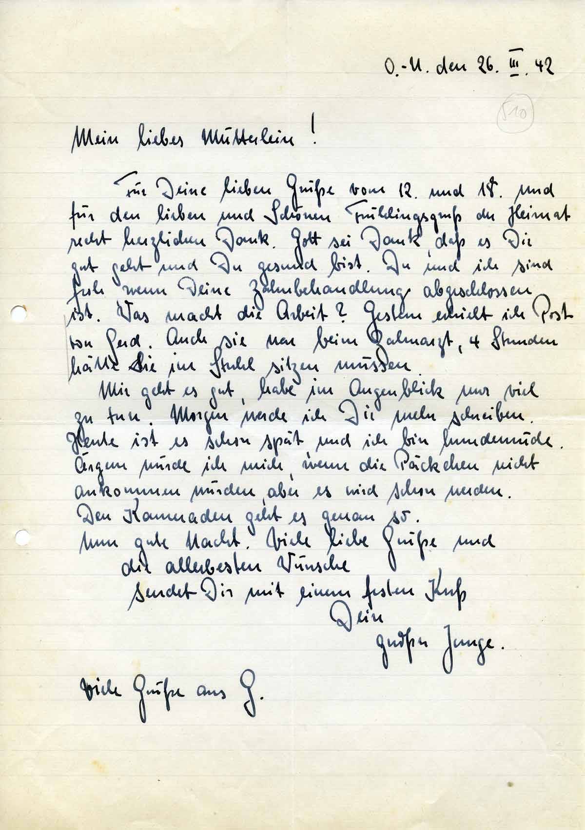 Rudolf Schmitz an Mutter Anna, 26. März 1942
