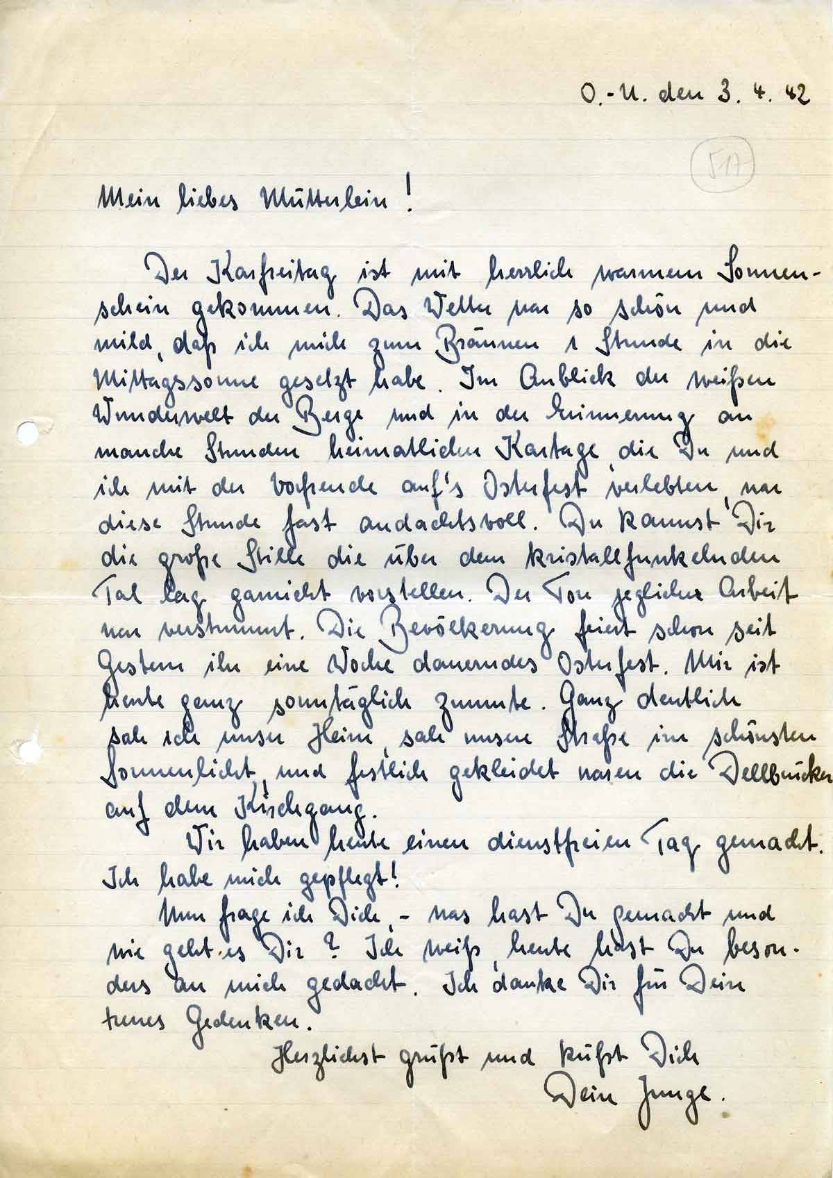 Rudolf Schmitz an Mutter Anna, 3. April 1942
